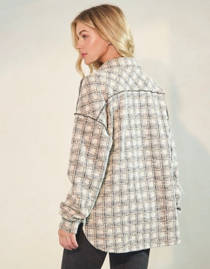 Stay In Touch Plaid Shacket, Cream/Black