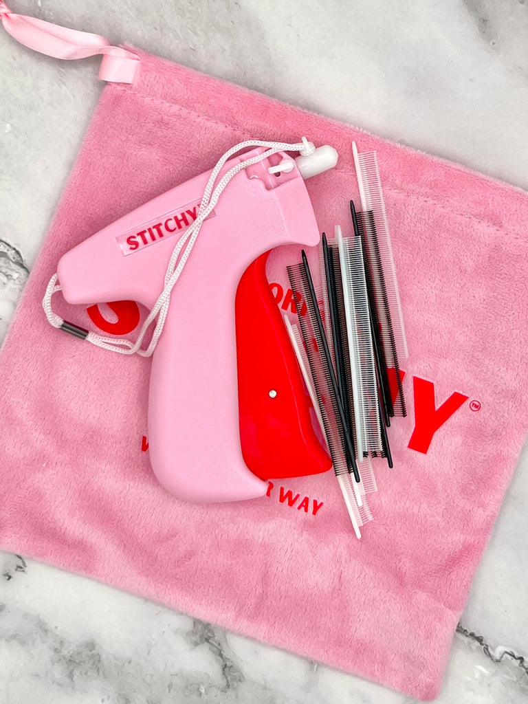 And the best part? Every Stitchy set comes with 500 white and 500 black stitches, AND a travel bag, so you'll have an army of options at your disposal to conquer any fashion emergency!